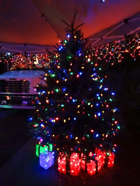 But as much as we were delighted with these two plastic decorations, we were not prepared for the display that the family had created in the cargo area of the medium duty truck that pulls their fifth wheel.